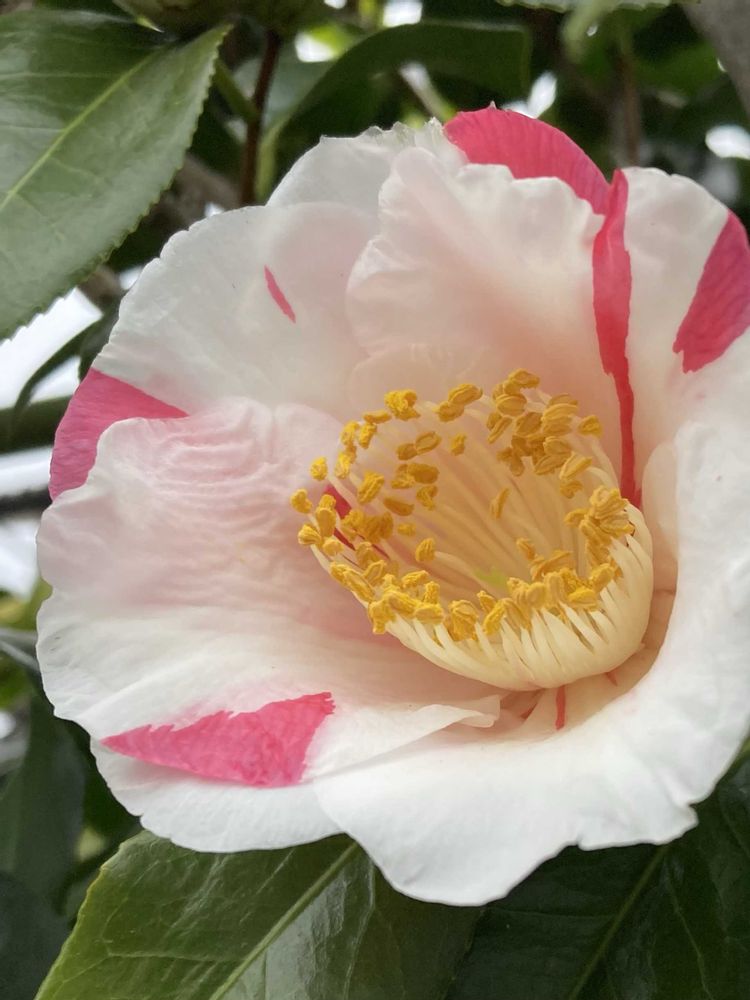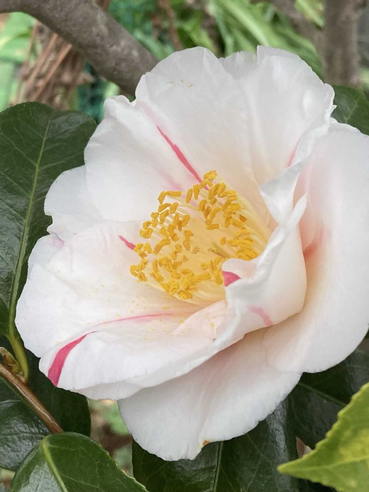 ピンクの差しが入った、大輪の立派なツバキさんが、とても綺麗に咲いていました✨
