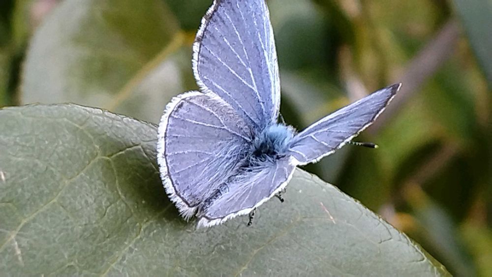 サザンカの葉っぱにヒメシジミらしき蝶々を発見しました😲