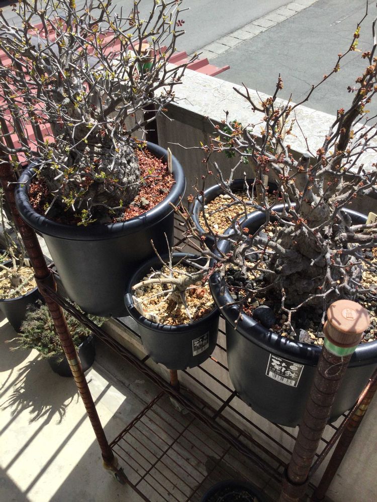 まだ朝は気温も10度未満なので、日中だけベランダに出して日光浴です。桜もまだ蕾ですが、もうじき開花すると思います。