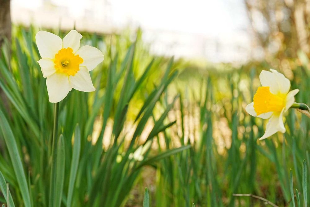 スノーフレークさん横構図と隣に咲いていたスイセンさん