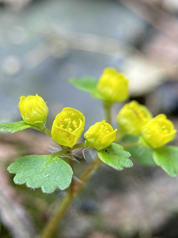 花周辺の葉の色が猫の目のように変化し、花後の実に裂け目ができタネが猫の瞳孔に似ることから、「猫の目草」とか。
