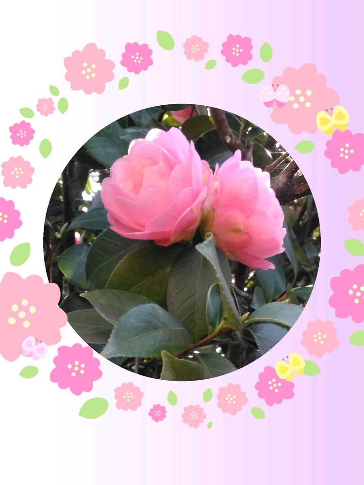 昨日 こども広場に咲いていた 双子の椿ちゃん。