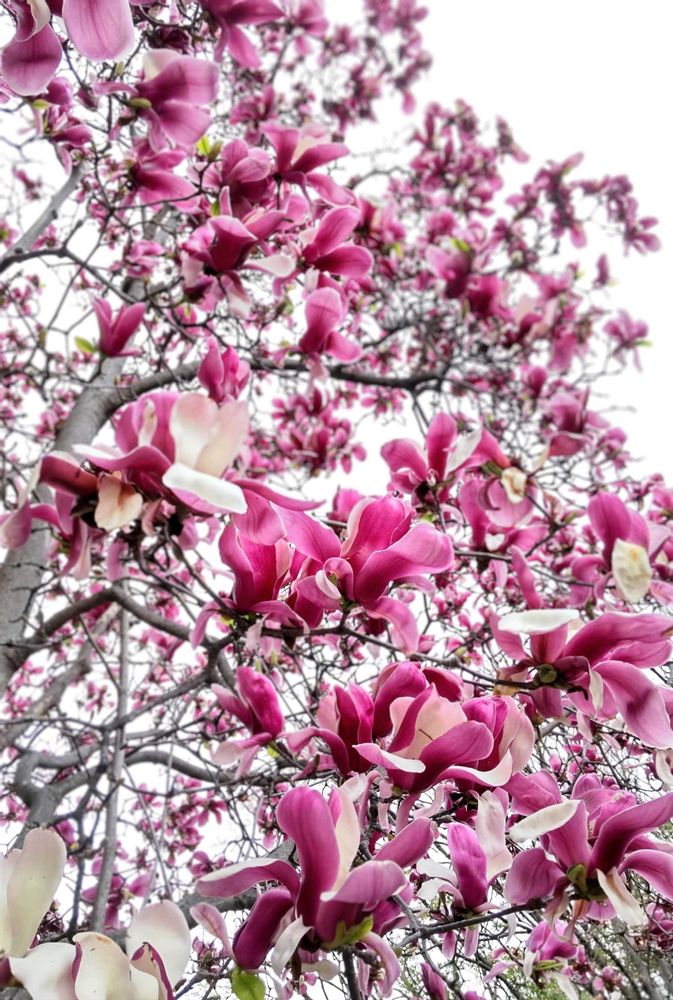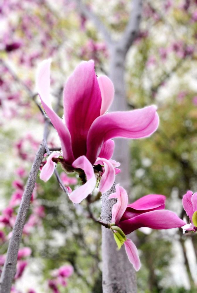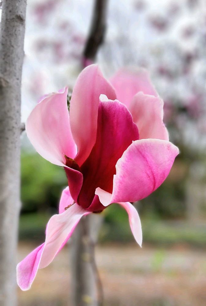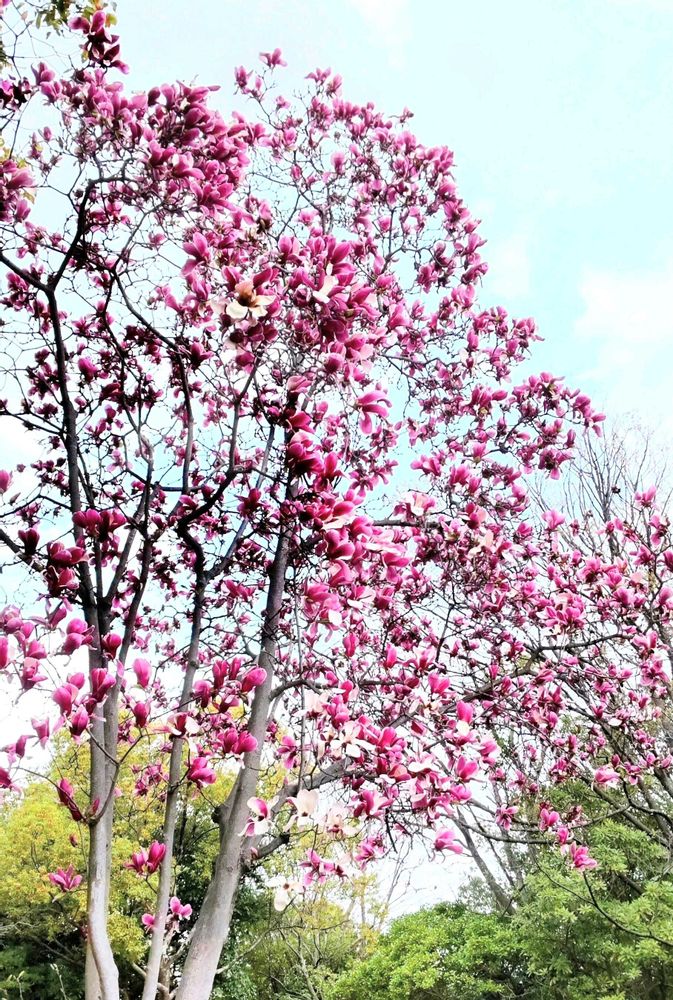 花びらの外側が赤紫で内側が白いソトベニハクモクレン