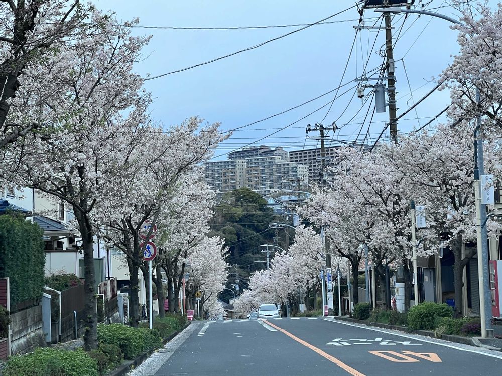 横浜 金沢区の桜並木の坂道です。