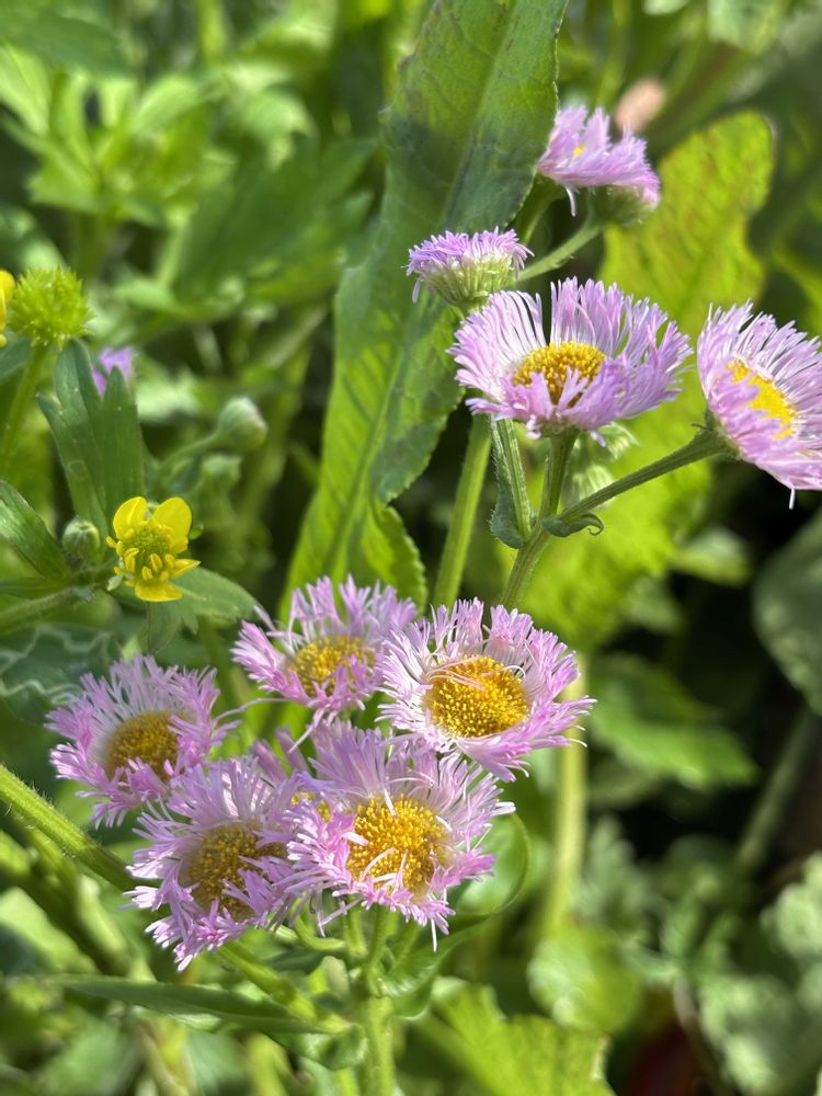 4枚目はハルジオンとキツネノボタン。春はピンクと黄色のコンビが最高‼️👍このハルジオン、すごくピンクが濃くてきれい🩷