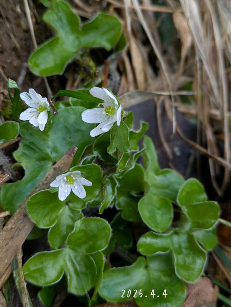 ①②③④ ミスミソウに似ています~葉は三角形で肉厚、3浅裂し裂片の先が丸くなるのが特徴…花弁状に見えるのは白い萼片、緑色で萼片のように見えるのは総苞片で白い萼片を支えています‥☘️🤍🤍🤍☘️