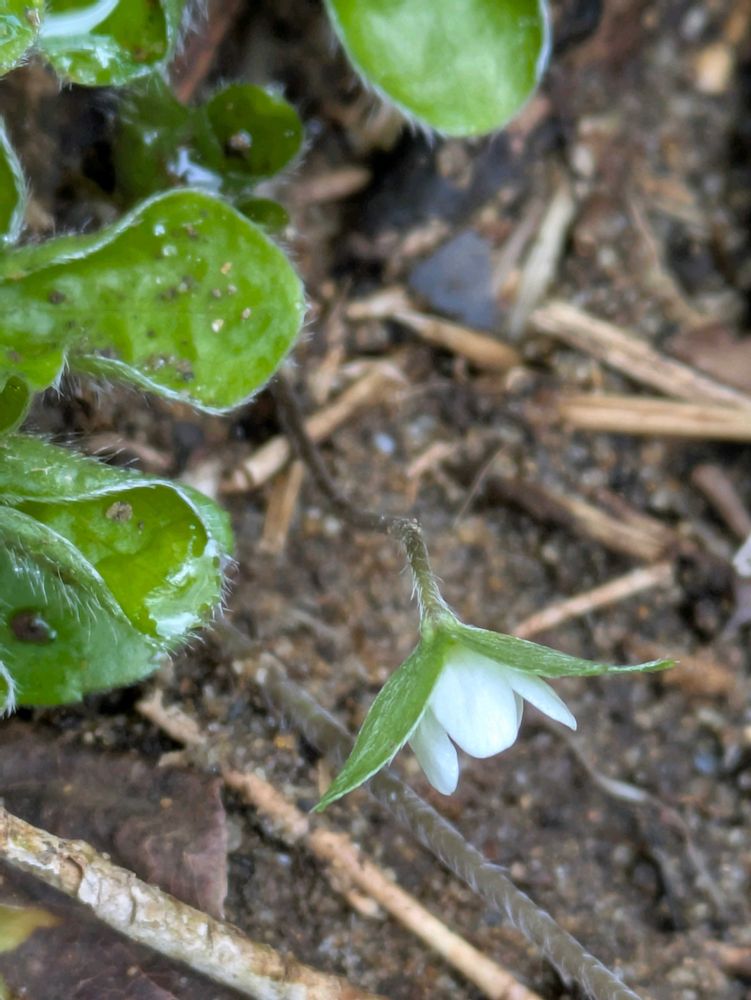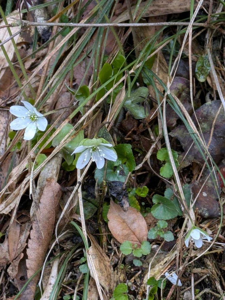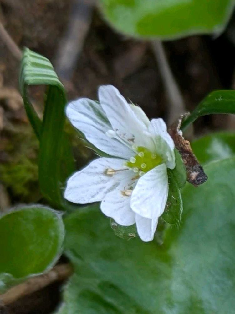 湧水が染み出している林縁の斜面に落ち葉にうもれるように咲いていました‥☘️🤍☘️