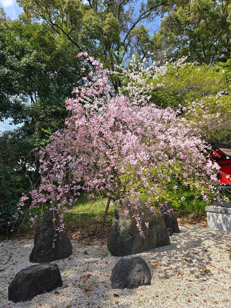 神社にはしだれ桜と花桃も綺麗に咲いていました🌸