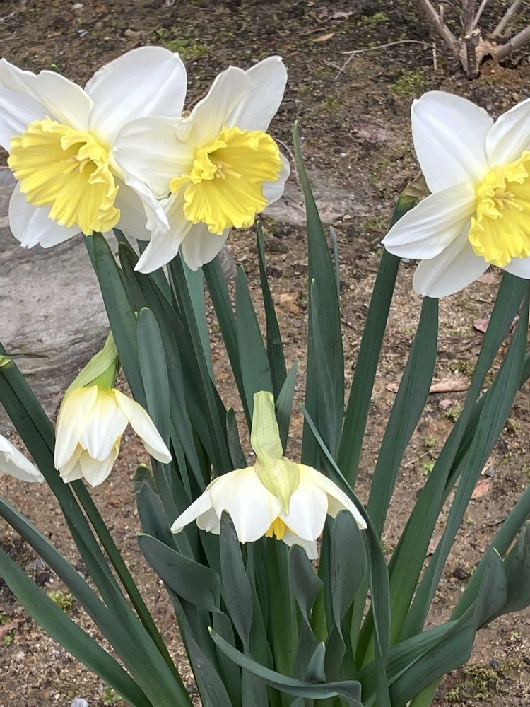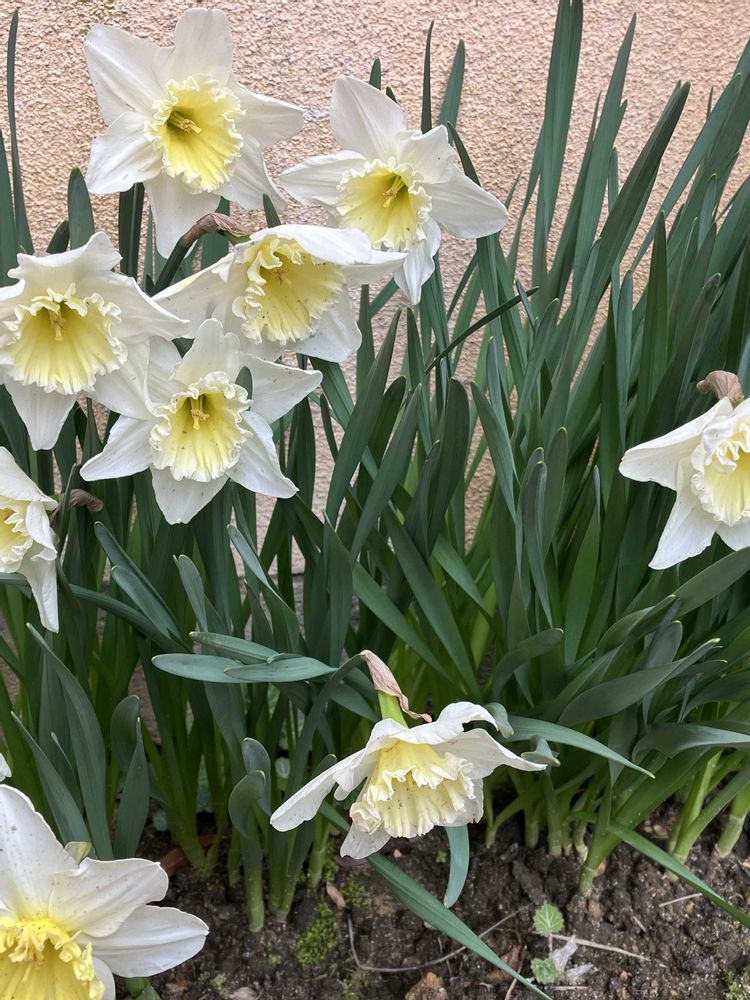 スイセン達、風にも負けず、雨にも負けず、また起き上がり咲いてます💛