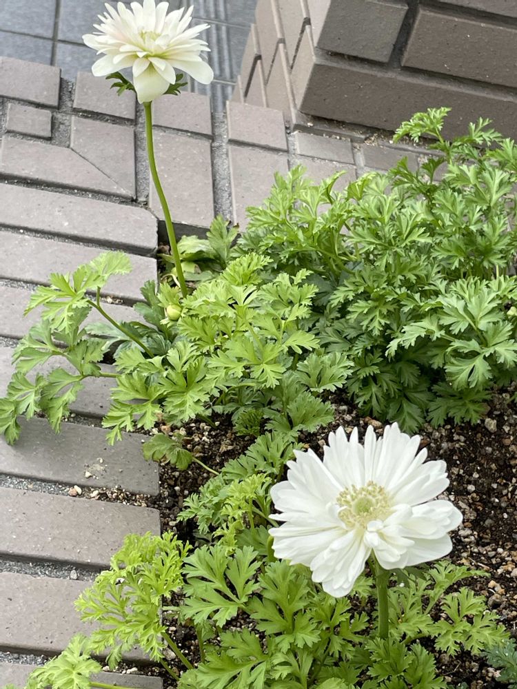 門扉横ミニ花壇植えぱなしアネモネ咲いて来ました