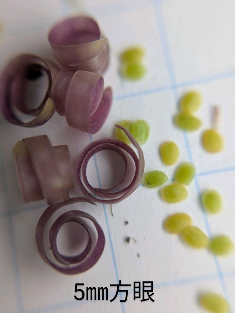 種を飛ばして遊んでいた時に、手の中に残った種を見たら、種以外に小さなビーズのようなものがありました👀