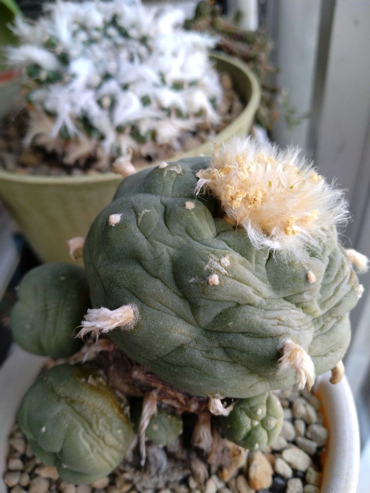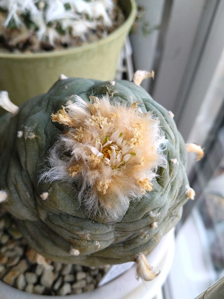 もう一つの🌵ロフォフォラもよく見たら地味〜〜〜に🌼咲いていた😅