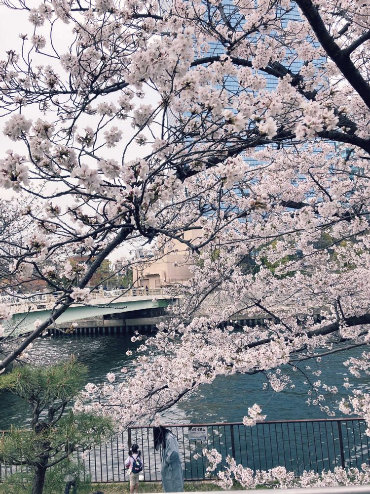 ② お堀沿いの桜🌸水の上に大きく枝を伸ばした木がたくさんで綺麗でした。