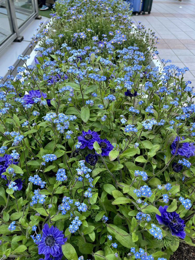 こんにちは✨昼間の気温20℃💦JR大阪駅周辺での買い物に行きました☺️ 1️⃣2️⃣花壇の花が🎵とても綺麗な青でした😆 3️⃣リキュウバイも綺麗🥰 4️⃣KITTE大阪の桜と5️⃣花びらが素敵でした🌸