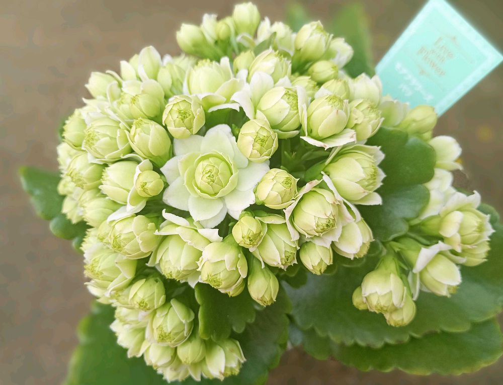 カランコエ「モアフラワーズ パリ」 八重咲きですが花持ちも良く ひとつの花が1が月は咲いているとか🏷️👀。