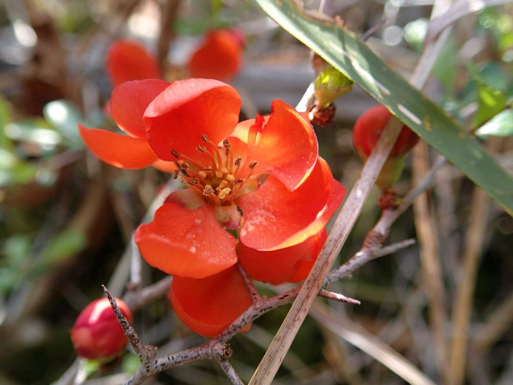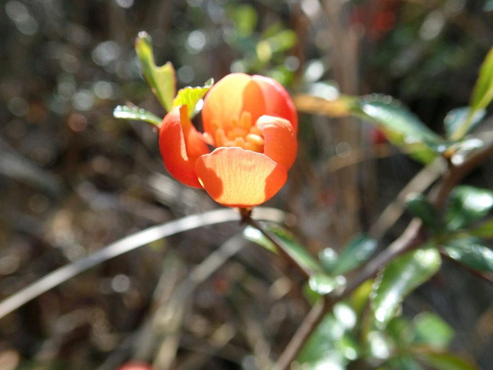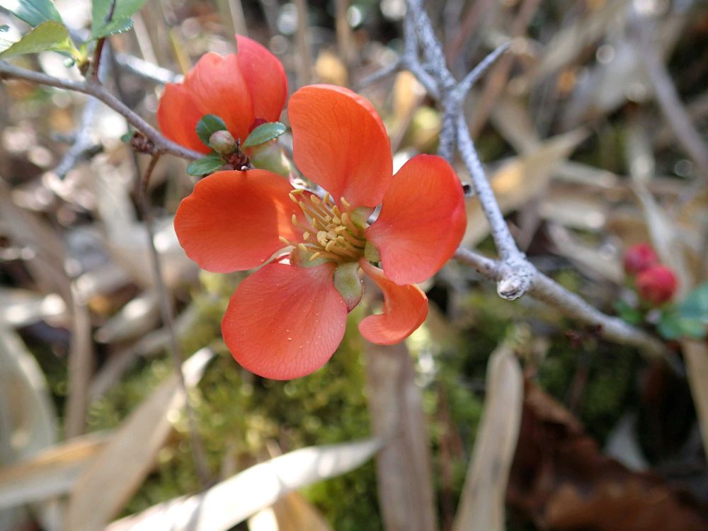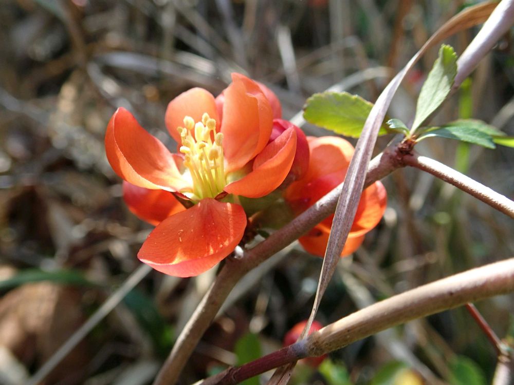 地元の低山でクサボケが咲いていました。ここのは野生のもの。春の今このオレンジ色の花びらがめだちます。🌼🤗😼