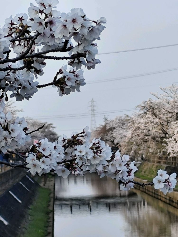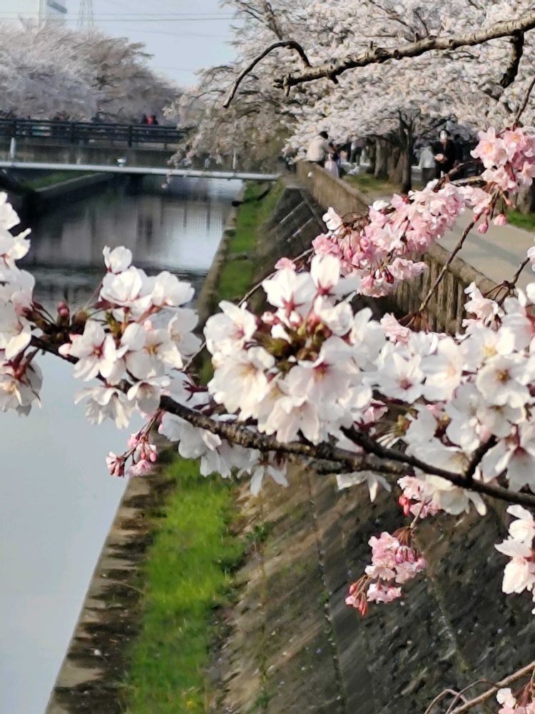 汚い川😱ですが川沿いに両岸の桜散歩道です