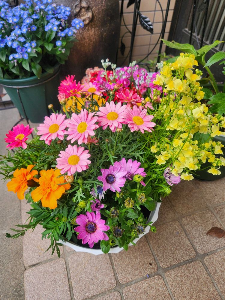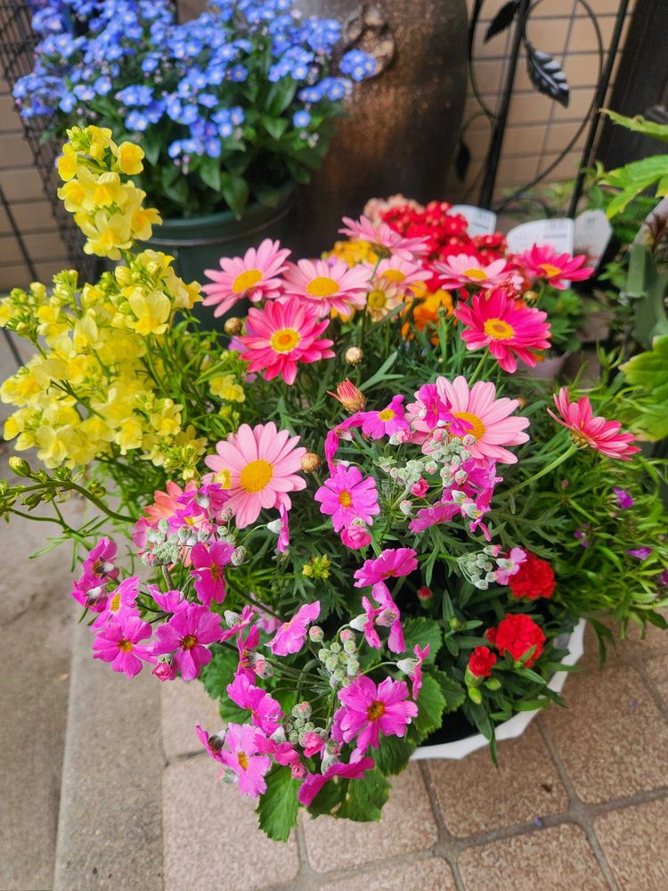 ホムセンで花苗を見ていたら、寄せ植えに釘付け…連れて帰りました~😊春爛漫ですね🌼