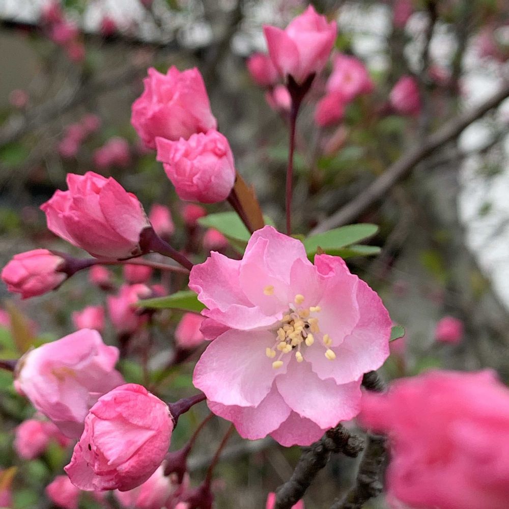 桜のピンク色も好きだけどハナカイドウの少しグラデーションがかったピンクが大好きです