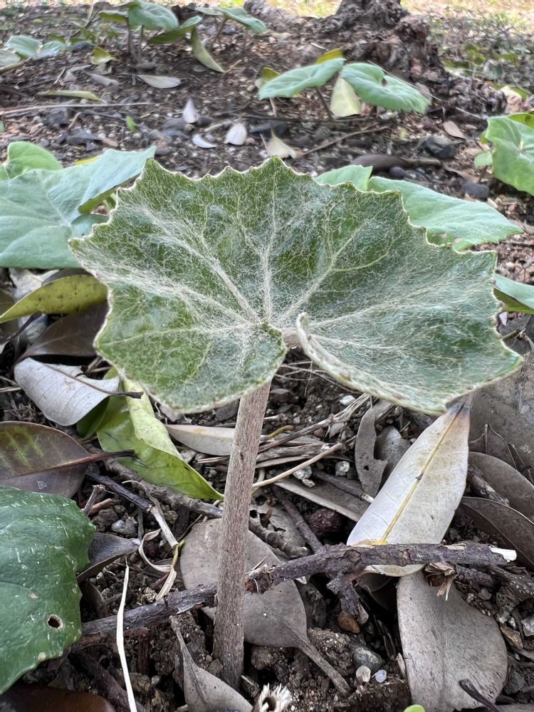 出てきたばかりのツワの葉は産毛があり茎も柔らか。