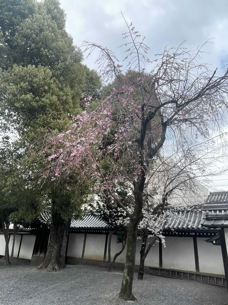 佛光寺の枝垂れ桜🌸 今週末くらいが満開になるかしらね〜🤗 ピンク🩷の枝垂れ桜が きっとお堂に映えるだろうな😍💖