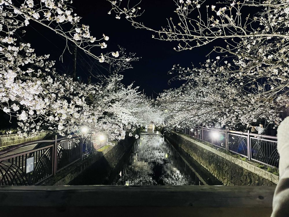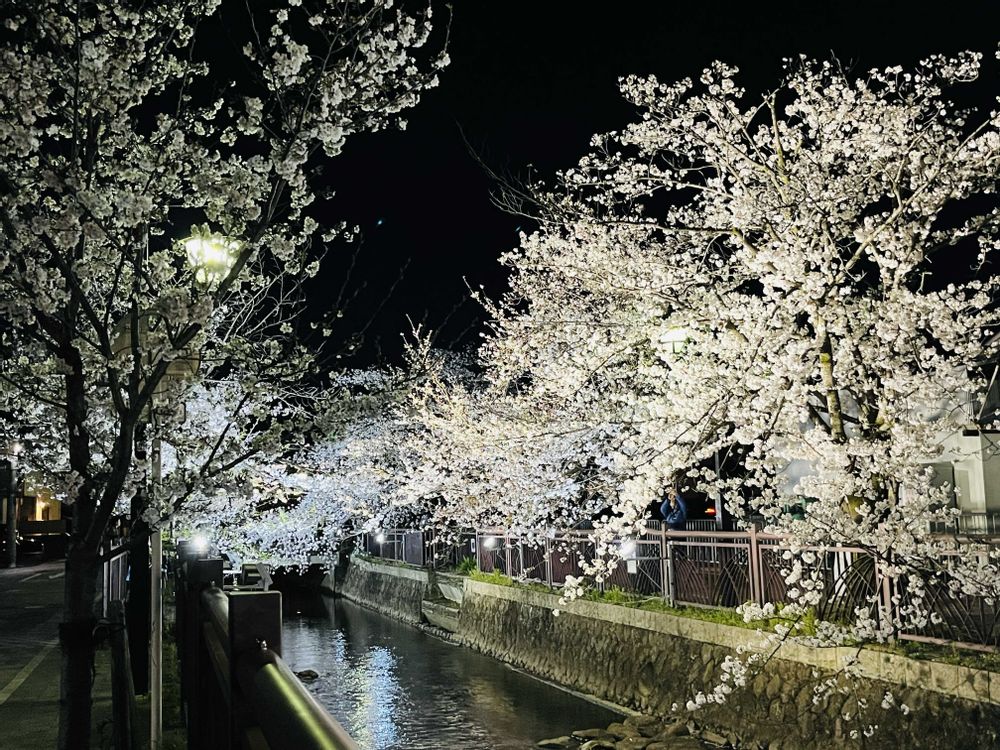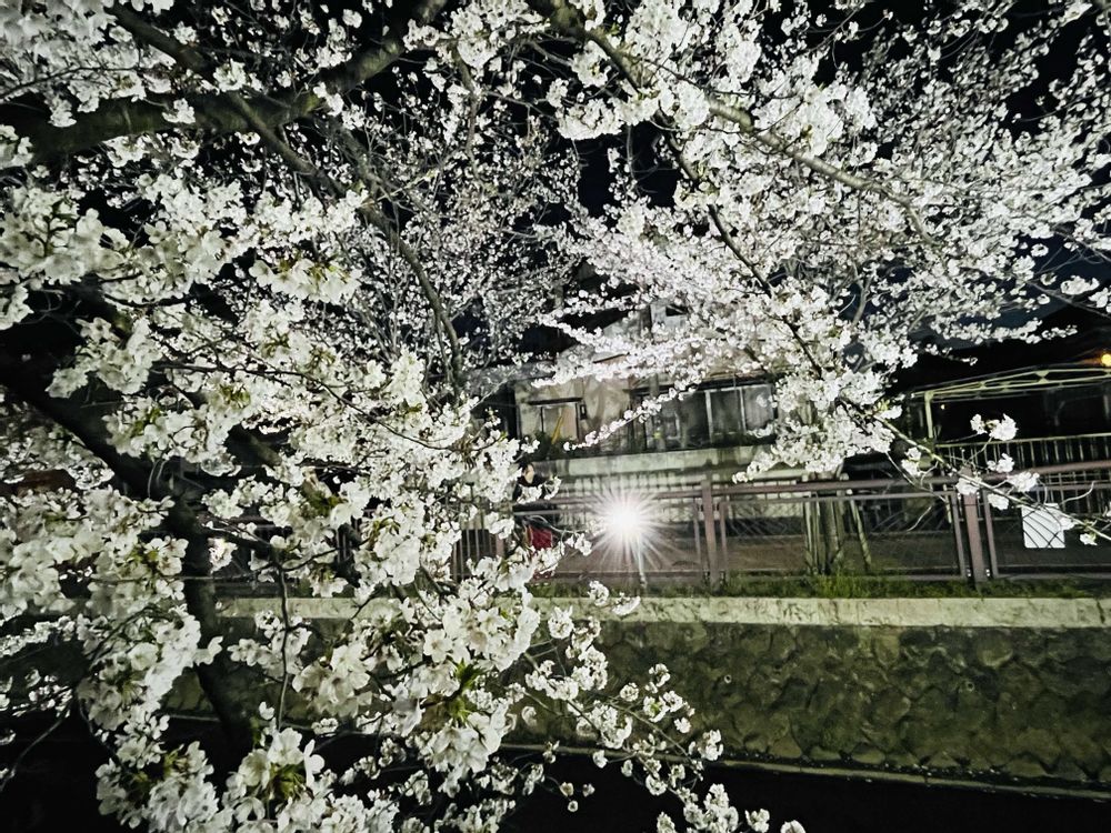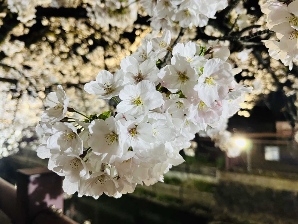 娘と夜桜見物に行って来ました。朝行った近くの桜並木よりこちらの方が満開で、ライトアップされていて見物客も沢山いました🌸
