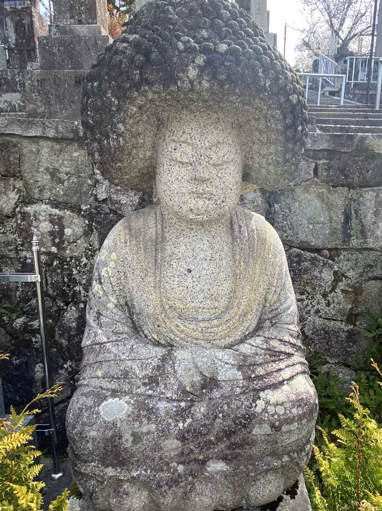 石像の阿弥陀仏、どっしりして穏やかな顔