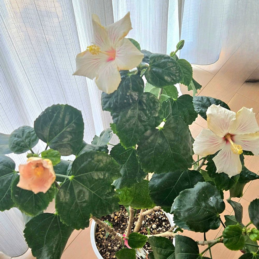 私もハイビスカス🌺の冬越しはリビングに入れてます。
