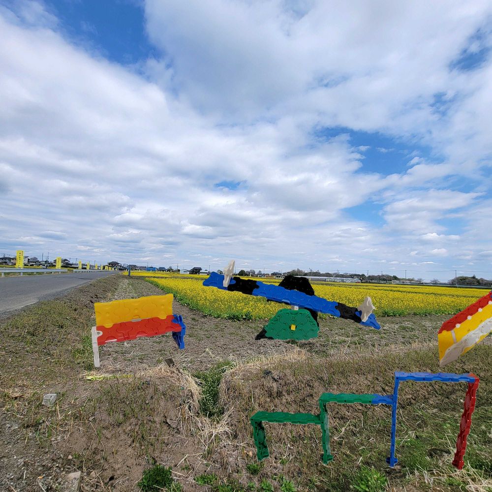 孫より私が楽しくなり遊んでしまいました🤣それを菜の花畑に張り付け公園風に。