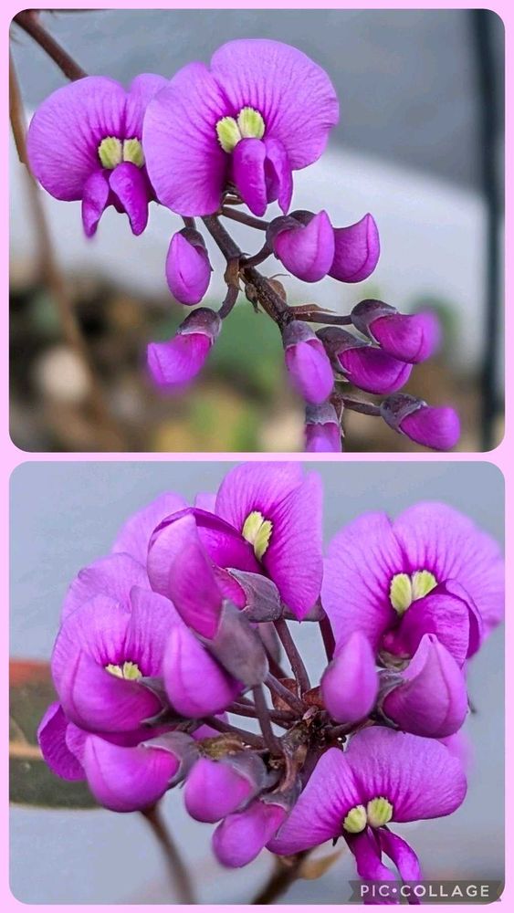 ハーデンベルギアさんのお花は、ビオラさんのように人間の顔に見えますね。赤紫色💜が落ち着いた貴品を感じます。🤭😄👌