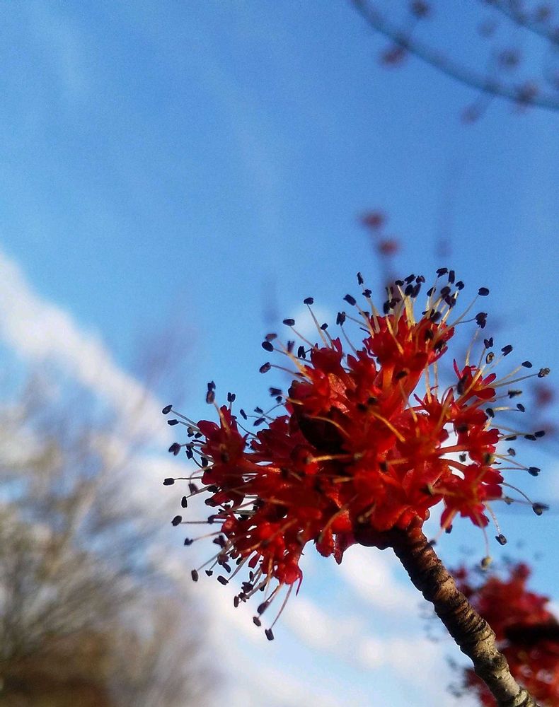 ④⑤ハナノキ…葉が出る前に咲く楓、雌雄異株でこれは雄花です。何年か前に頂きましたが、お花が咲いてハナノキだとわかりました。秋の紅葉も綺麗です🍁