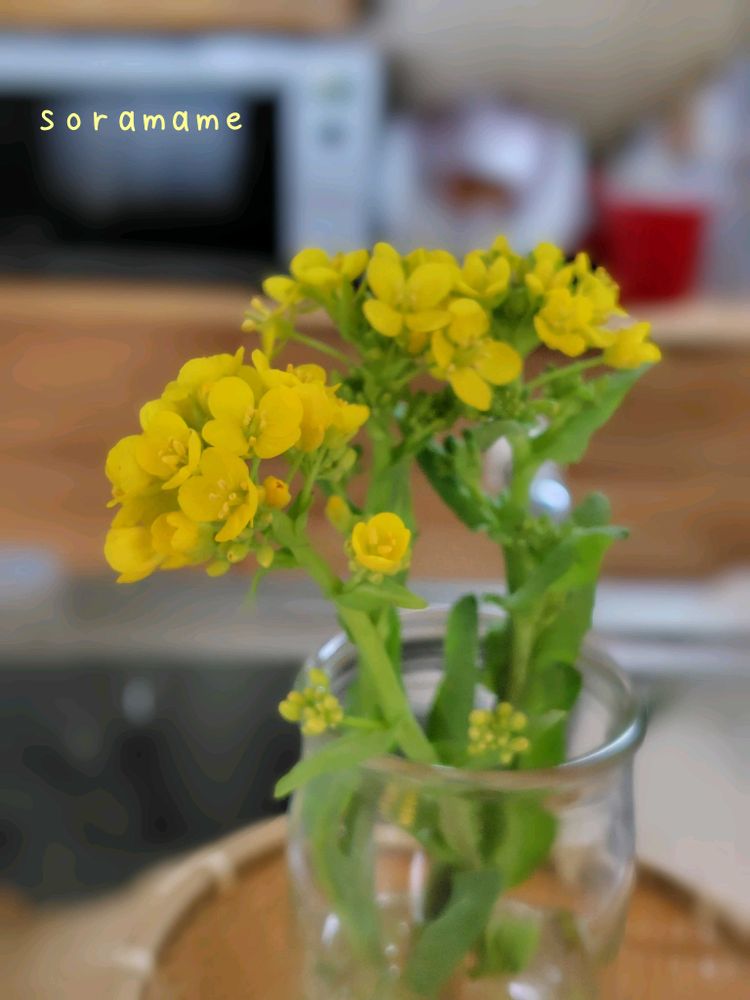 茹でる前に少し取り置きして水に挿しておいたら、お花が咲きました🟡