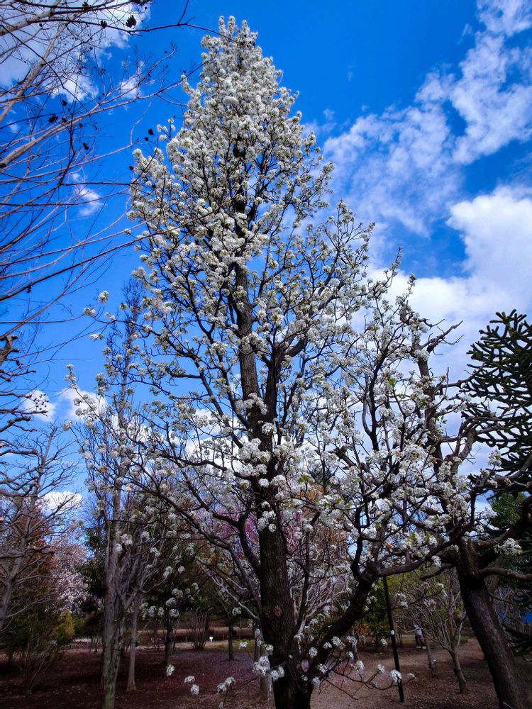 マメナシくんのその後をチェックしてきました😀 すると、おーっ🤩 ボリュームアーップ❗️ 手毬のようなかたまりが枝々にいっぱいついていました🙄😮 満足🙌(農業試験場内にて)