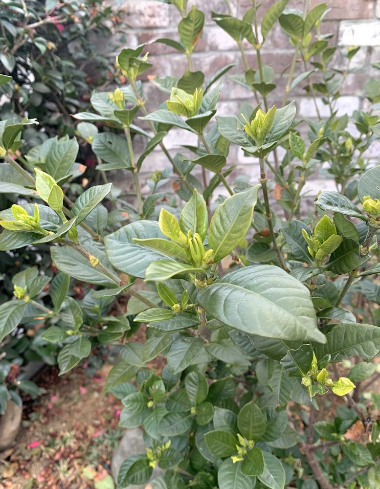自宅庭の大好きな八重のクチナシ。大切にしているのですが、葉が茶色に変色し枯れる葉が続出したので、