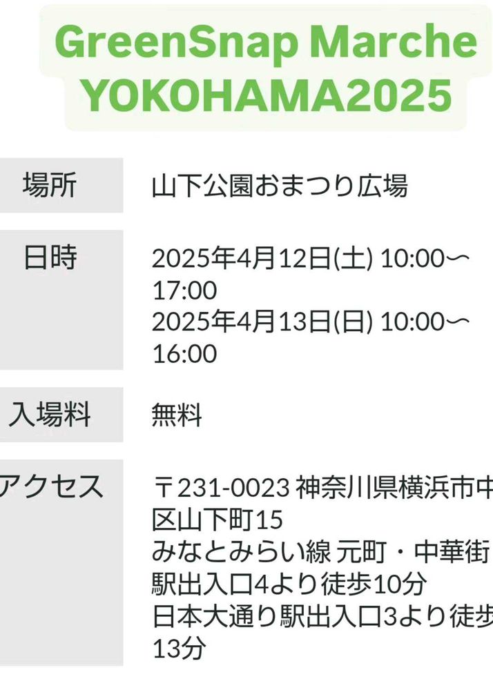 GreenSnapMarcheYOKOHAMAでは多数物販出店があり その他ワークショップやステージではマーチングバンドやチアダンス等も出演します