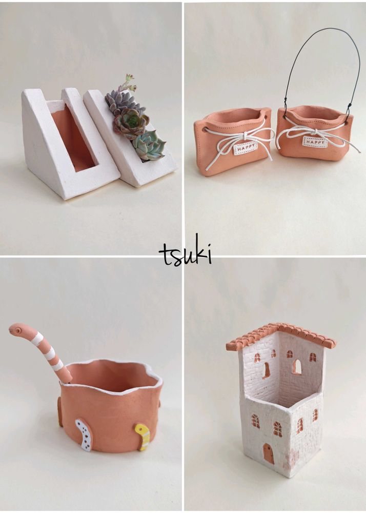 tsukiはテラコッタ鉢の新作「サンドイッチ鉢」や「チンアナゴ鉢」等いろいろとお持ちします