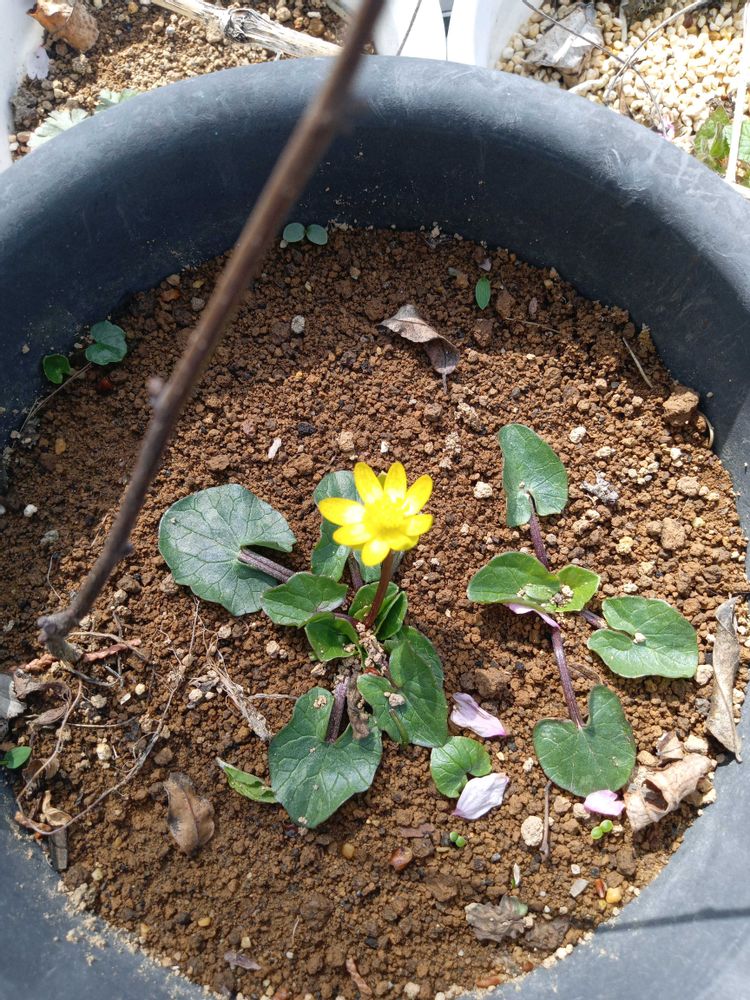 鉢から出てきて咲きました。高さは3cmくらいです。