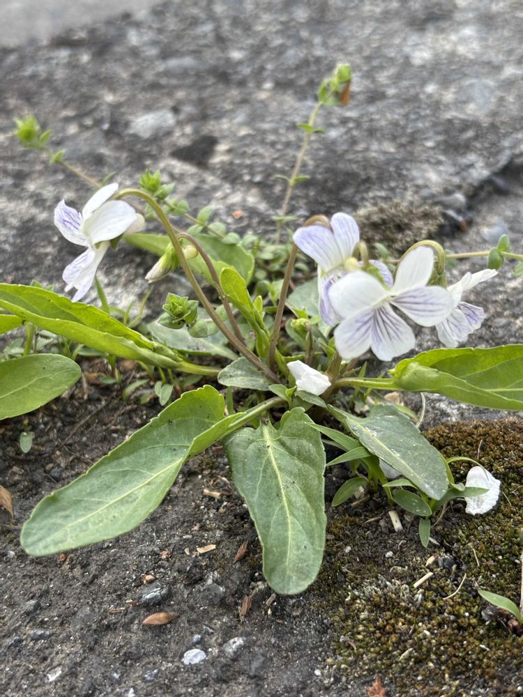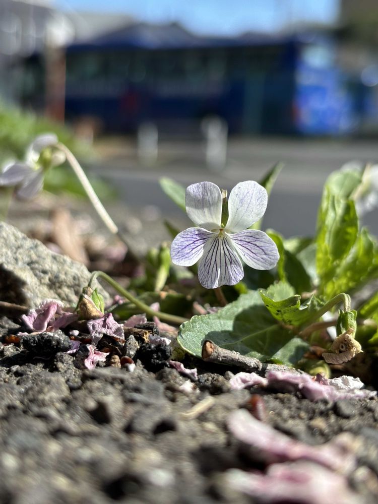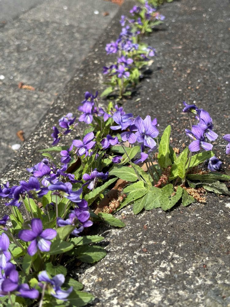 以前同じようにホンスミレが群生していた歩道を新しいアスファルトで塗り固められ、あー残念😢って思っていたら昨年からまた芽を出して花を咲かせ、今年は更に増えていました!