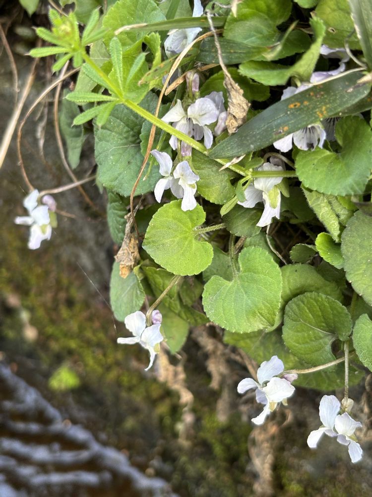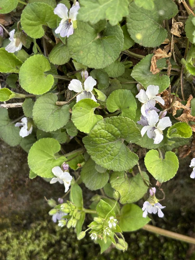 アオイスミレの道を挟んだ反対側にコスミレが何株か咲いていたのを根こそぎ盗っていかれました。