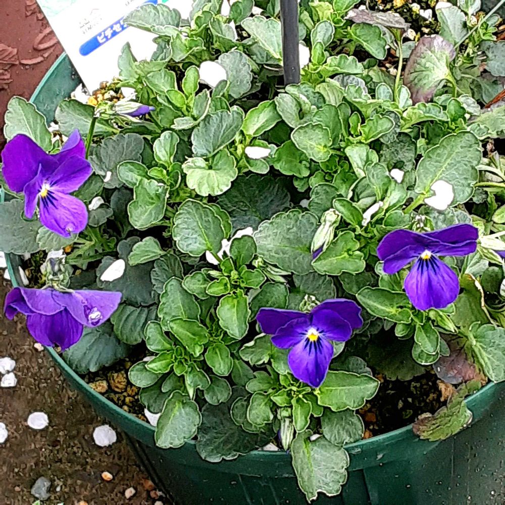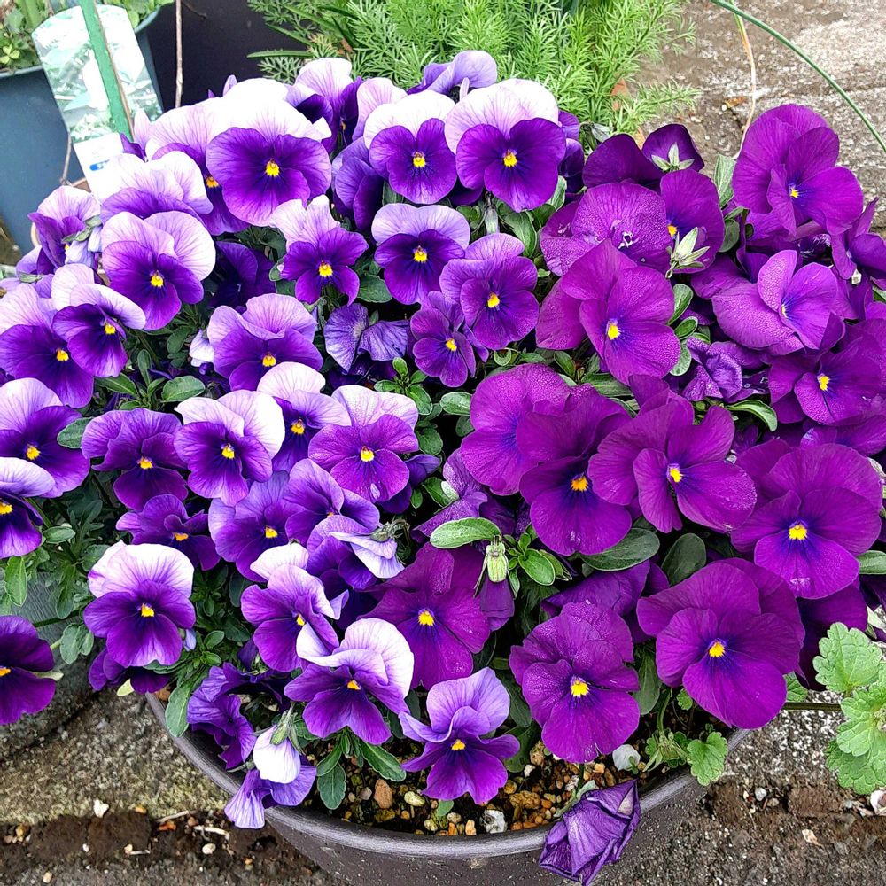 この鉢植えは名も無きビオラで、ほかのフリフリ系のビオラの鉢植えに目が行ってしまう中、健気にモリモリ咲いてくれてます💜
