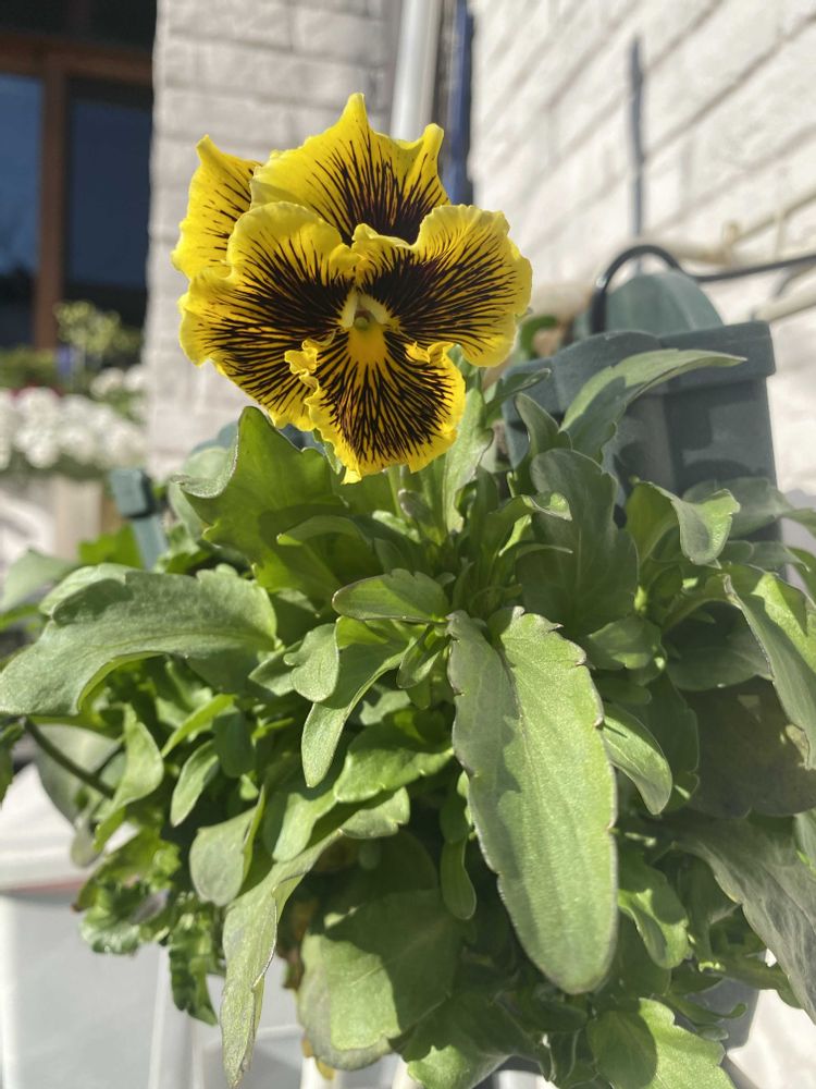 種まきパンジーやっと一つ目が開花🐯ビオラと思っていたらパンジーでした😮