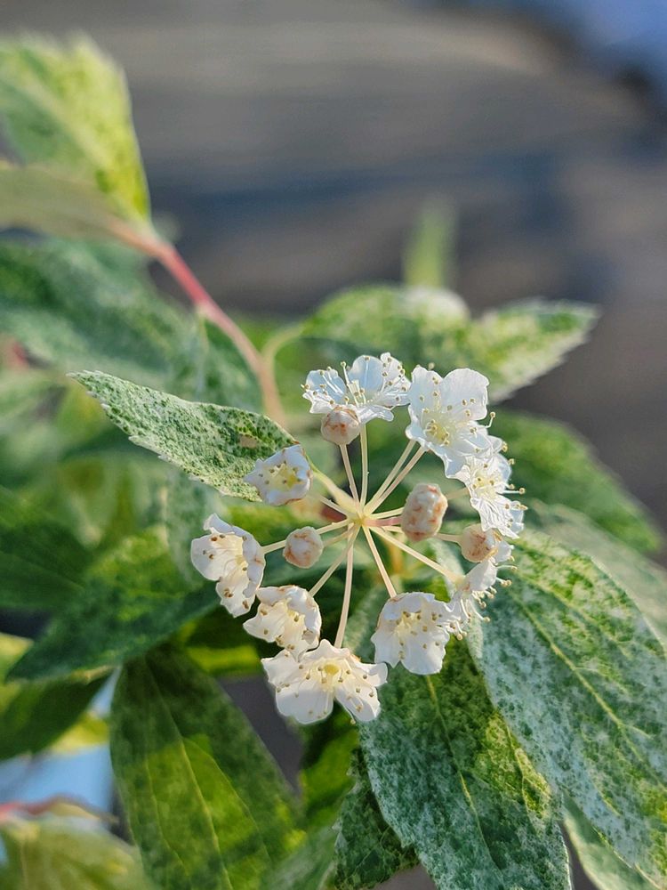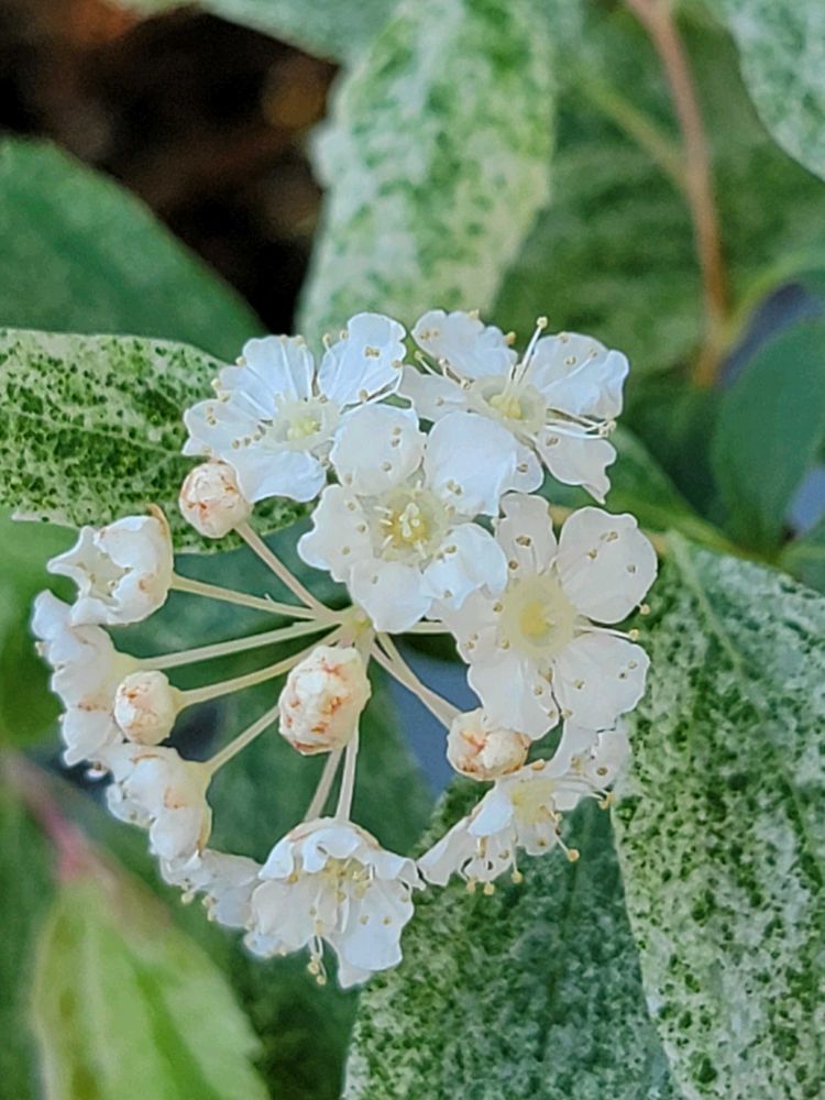 お花は白いようです。蕾と新芽が桜色に染まる💠