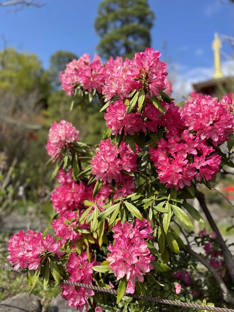 そちらの庭園に咲いていました石楠花と桜です🥰