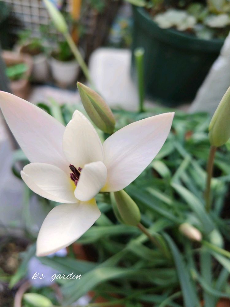 3️⃣裏庭では長い間放置していたにも拘わらず原種チューリップさんが咲きました🌷