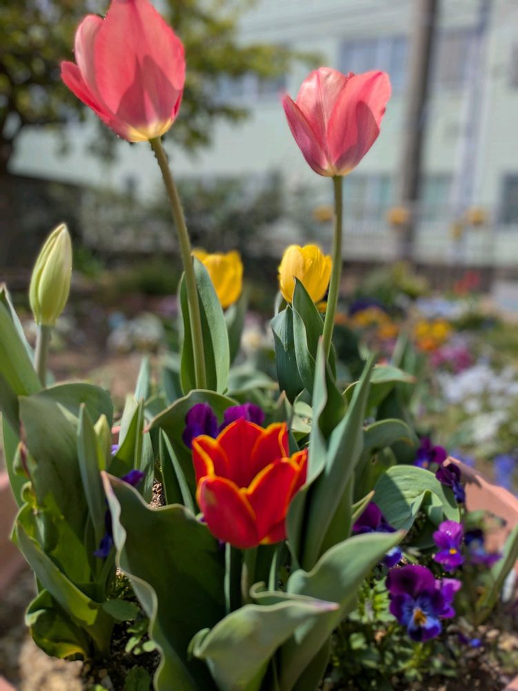 咲いてくれましたね👏花たちも口々にお祝いを言いたそうです 特に赤🌷‼️