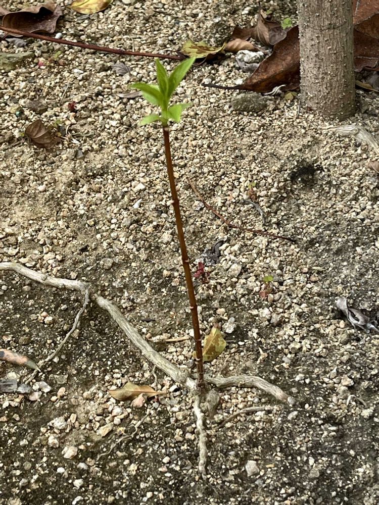 ヒメウツギの伸びた根から新芽が🌱まっすぐ立ってて驚きました!