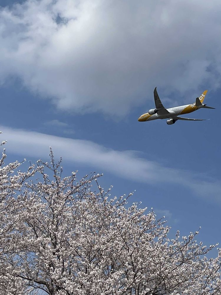 🌸と✈️、グッドタイミング👍