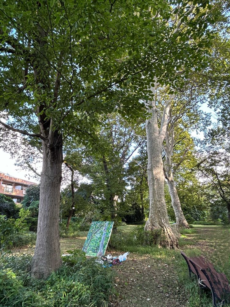 小石川植物園で🖼️絵を描いている方が出品していて、植物園で描いた鈴懸の木や菩提樹などが描かれてました