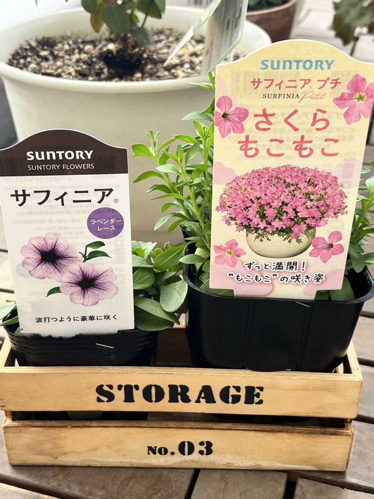 こんにちは✨ 今日、晴れていて昼過ぎの気温18℃で☀️過ごしやすいです🎵 1️⃣先週土曜日に☺️サントリーサフィニアプチさくらもこもことサフィニアラベンダーレースを買いました😄 さくらもこもこは育てた事がありまして😊また可愛い花を見たくて😆🎵ラベンダーレースは初めてで☺️たのしみです🎶 2️⃣今朝、植え付けました✨ 3️⃣去年5月から育ててますベゴニア✨室内で冬越しして🍀先月からベランダに出してます😊 丈夫で、ずっと元気です🎵