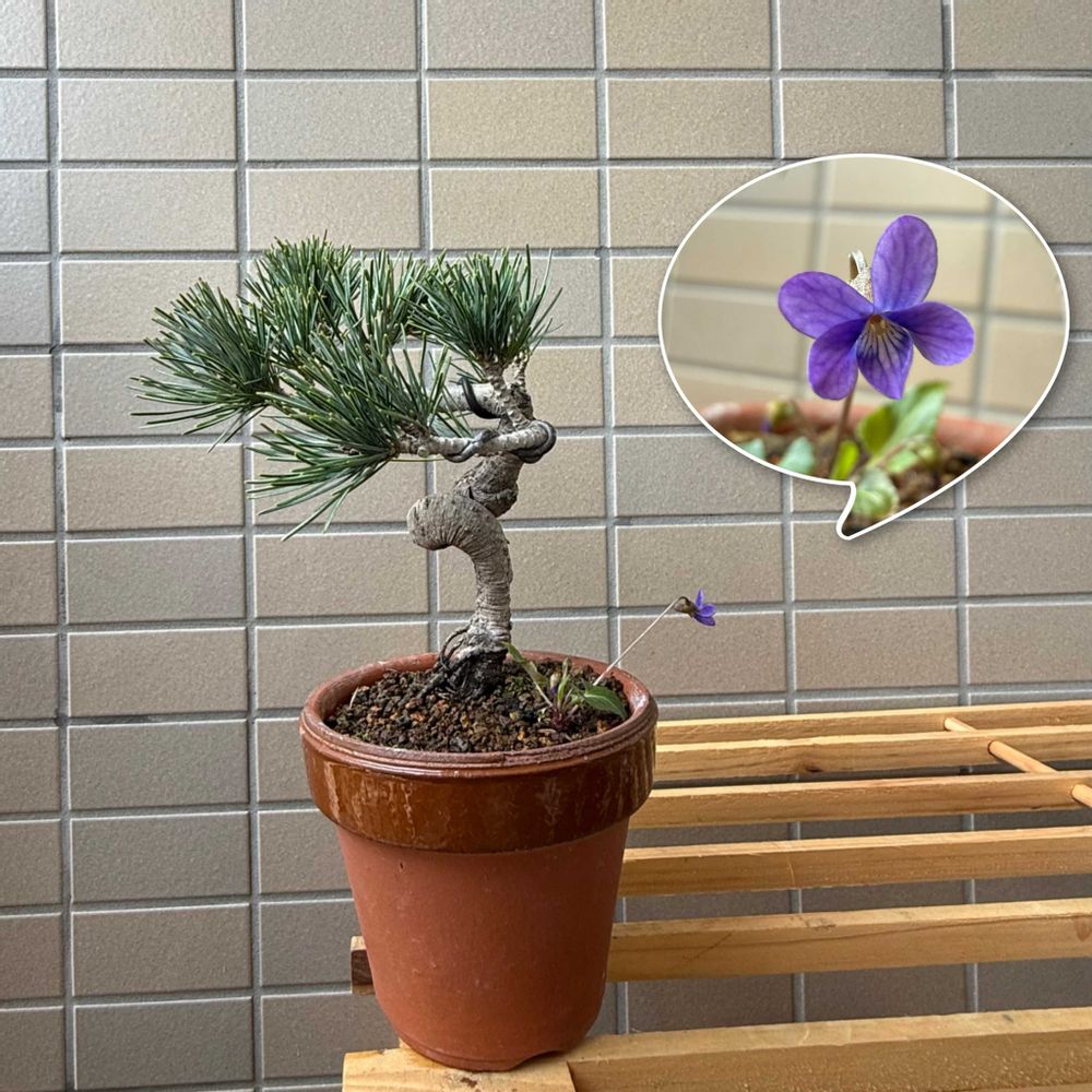 3枚目「スミレ」今年初の開花は五葉松の鉢!他に蕾もありましたが閉鎖花でした。